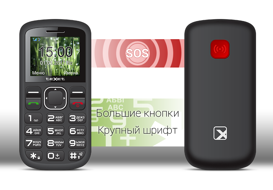 Структура меню простая, логичная, не вызовет затруднения у пользователей. Центральная навигационная кнопка обеспечивает удобное перемещение в меню устройства. Для экстренных ситуаций, при которых пожилые люди по состоянию здоровья или эмоционального стресса попадают в затруднительное положение, предусмотрена кнопка «SOS», выделенная красным цветом и расположенная на задней поверхности телефона. Нажатие этой кнопки сопровождается звуковой сиреной и обеспечивает мгновенный набор заранее запрограммированного номера или отправку СМС. Исходя из потребностей пожилых пользователей, новинка не перегружена функционалом. Ничего лишнего, только самое необходимое для стабильной и надежной связи. Виброзвонок, громкий сигнал вызова, встроенный светодиодный фонарик, FM-радио, емкий аккумулятор на 800 мАч - это стандартный функционал, который включает в себя модель.