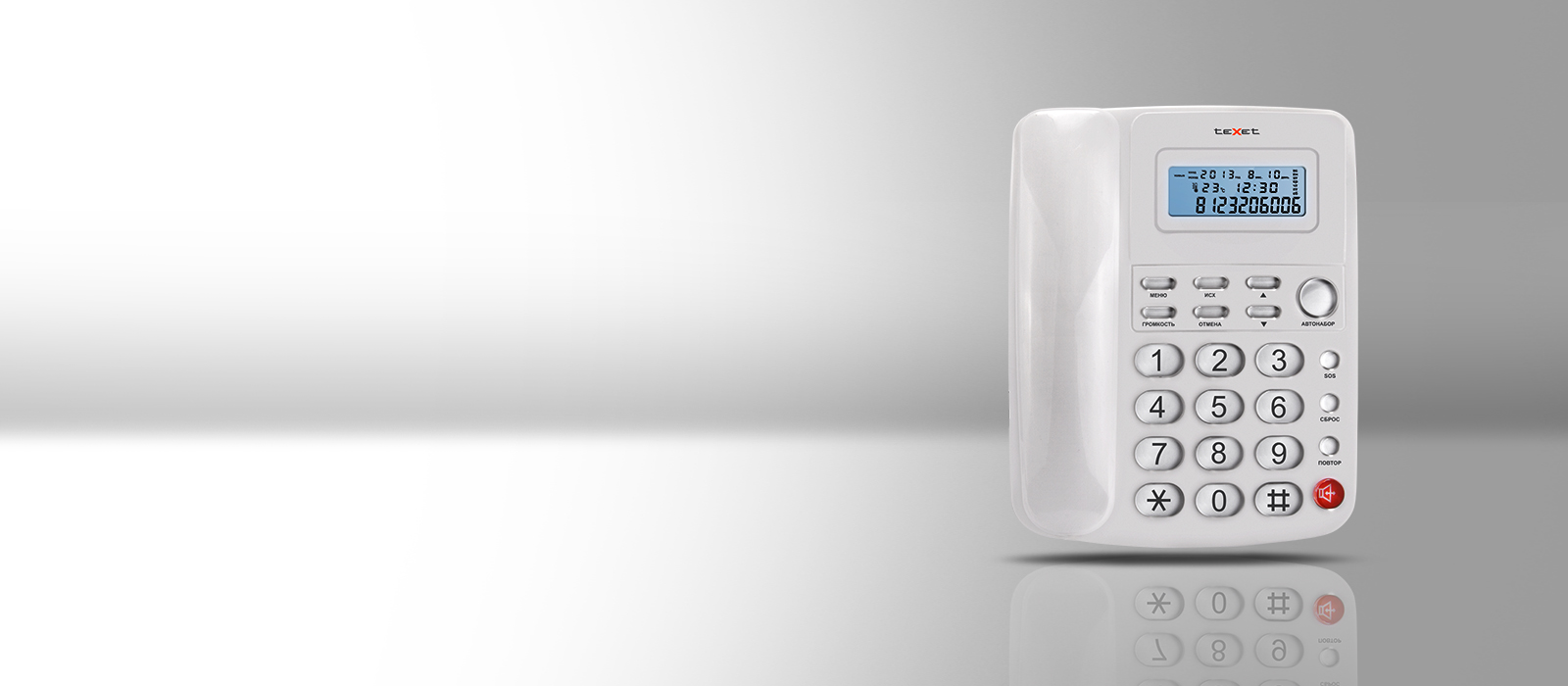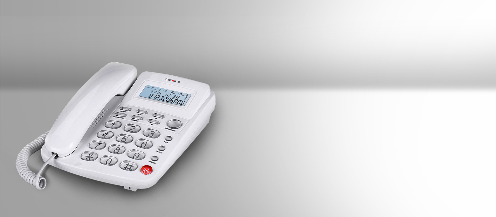 У телефона большой информативный ЖК-дисплеи с яркой белой подсветкой, контрастность которой можно регулировать. На экране аппарата отображаются день недели, дата и время, а также показания встроенного в телефонный аппарат термометра!