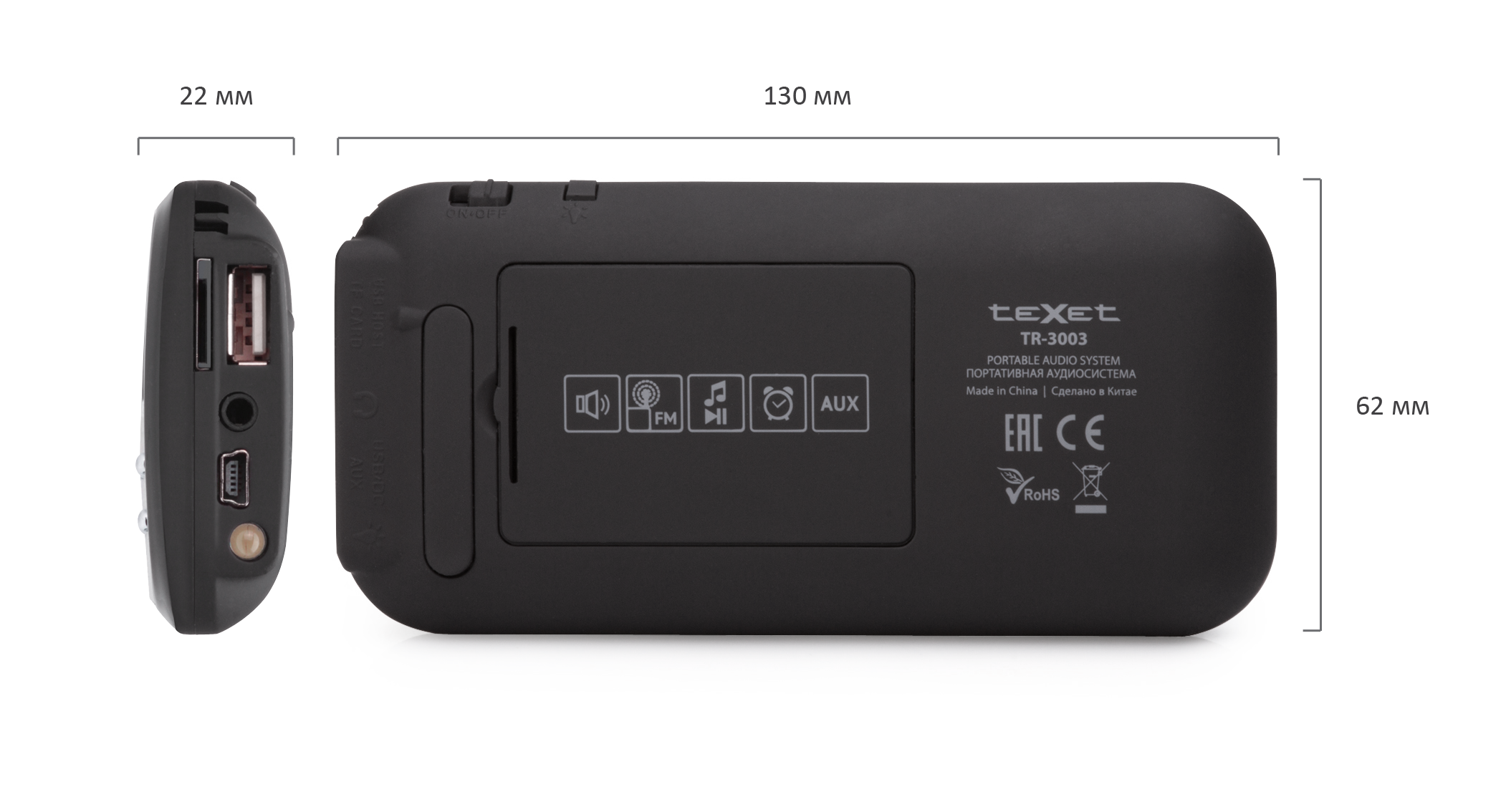 Наполните мир яркими звуками и сочными ритмами вместе с новыми портативными аудиосистемами teXet TR-3003 и TR-3004! Карманные модели можно брать с собой в любое путешествие и наслаждаться объемным чистым звуком даже вдали от электрической розетки. Новые мини-системы вместили в себя радиоприемник, часы с будильником, календарь и фонарик. И все это будет в любой момент под рукой!