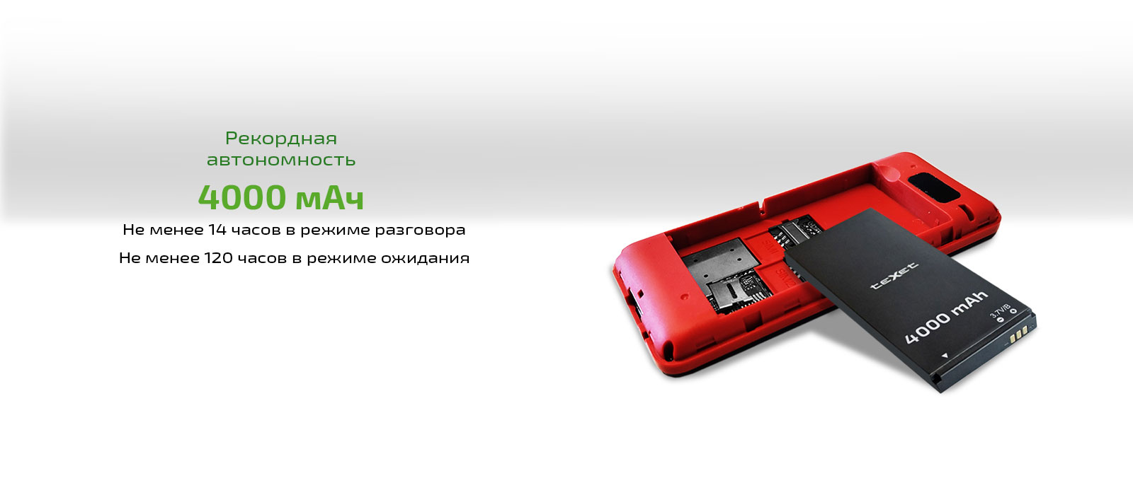 Кроме того, модель выделяется объёмным аккумулятором 4000 мАч, который позволяет быть на связи не менее 14 часов в режиме разговора и 120 часов в режиме ожидания. В телефон встроена функция POWERBANK с полноценным USB-интерфейсом, что позволит заряжать ваши девайсы с разным типом разъёма существенно быстрее.