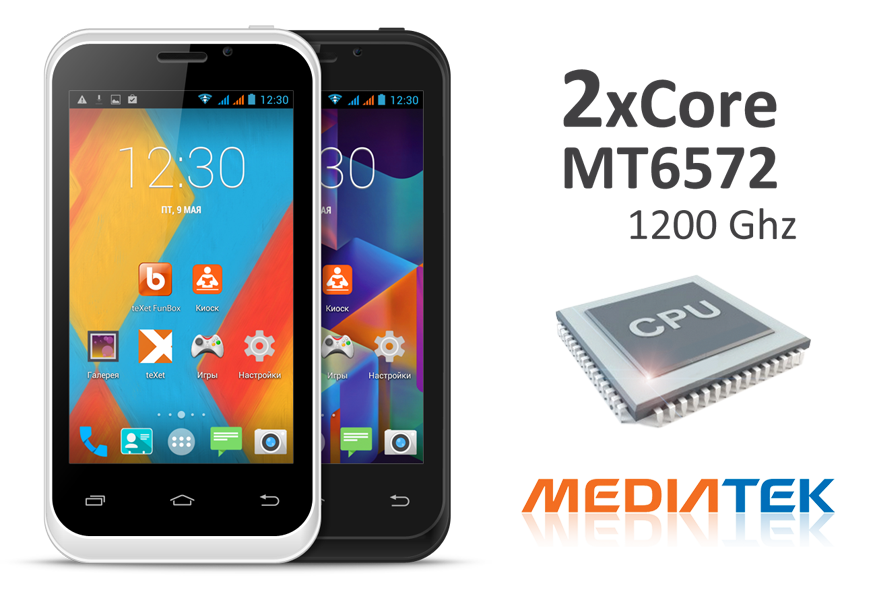 teXet X-basic 2 по-прежнему имеет производительный двухъядерный процессор MediaTek MT6572 1.2 ГГц и 512 МБ оперативной памяти. Данных характеристик вполне достаточно для запуска нескольких приложений одновременно, воспроизведения видео высокого разрешения и мобильных 3D-игр. За качество изображения, его четкость и контрастность отвечает графический процессор MALI-400MP.