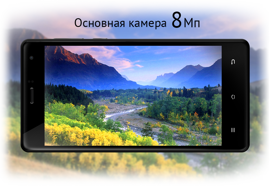 Преимуществом новинки является основная 8-ми мегапиксельная камера с автофокусом и вспышкой, большой IPS дисплей размером 5,5″ с HD разрешением 1280х720 точек. Без сомнения, это будет оценено любителями ярких качественных фотографий. А фронтальная камера в 5Мп позволит удобно общаться по скайпу или делать качественные селфи.