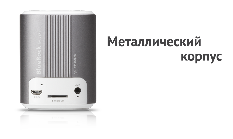 teXet BlueRock первой среди мини-колонок «заговорила» на русском языке. Приятный женский голос голосового меню быстро проведет экскурсию по всем функциональным возможностям новинки. Система подскажет, когда нужно зарядить батарею или прокомментирует действия при нажатии кнопок.