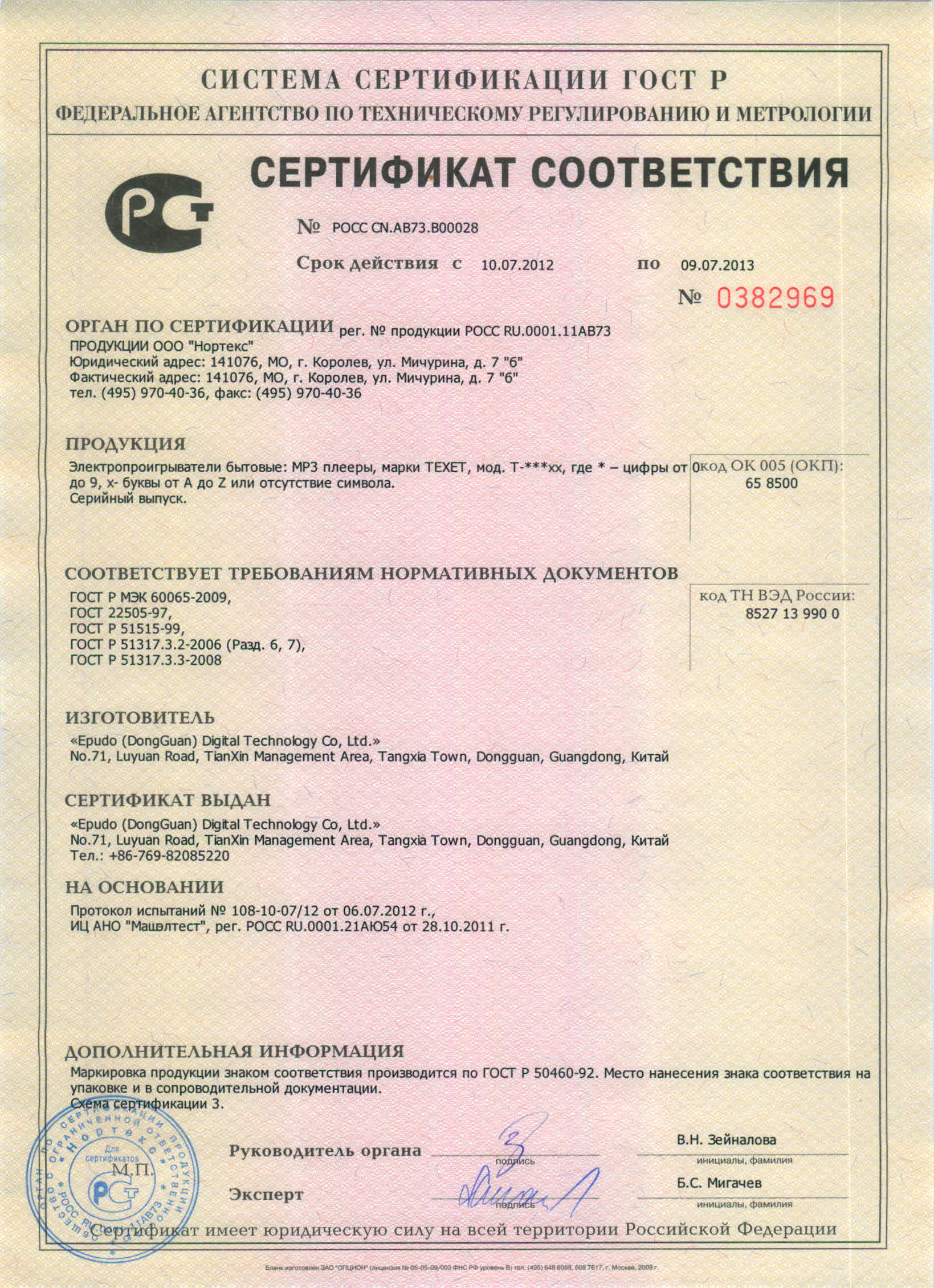 Сертификат ГОСТ Р 2013