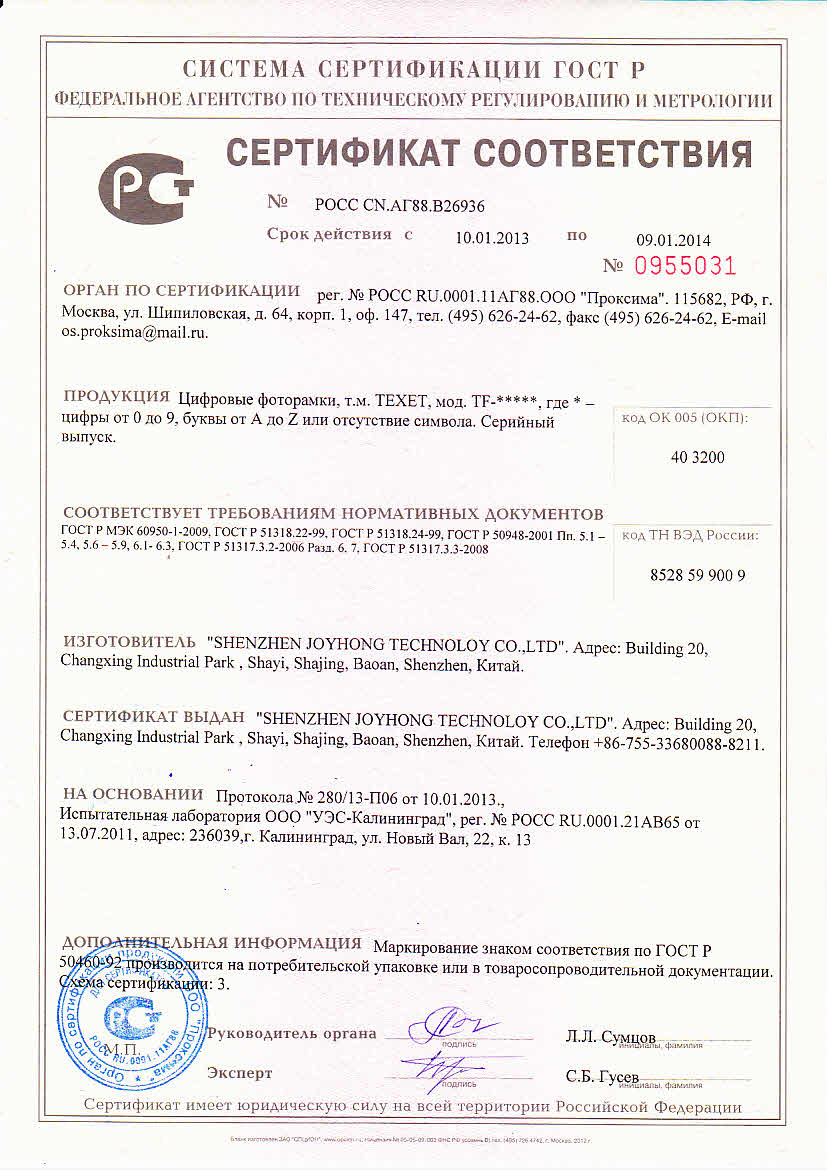 Сертификат ГОСТ Р 2013