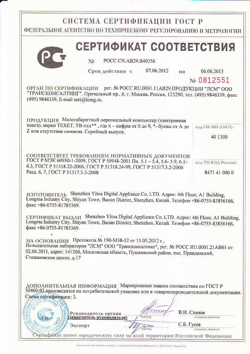 Сертификат ГОСТ Р 2012