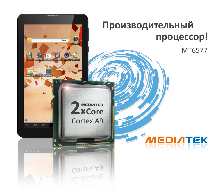 Коммуникации без границ и доступная цена – главные достоинства нового планшетного компьютера для решения всех повседневных задач. Функциональная модель бюджетной категории готова потеснить целый ряд гаджетов, среди которых телефон, навигатор и FM-приемник, и при этом не перестает быть производительным планшетом с мультимедийным функционалом!
