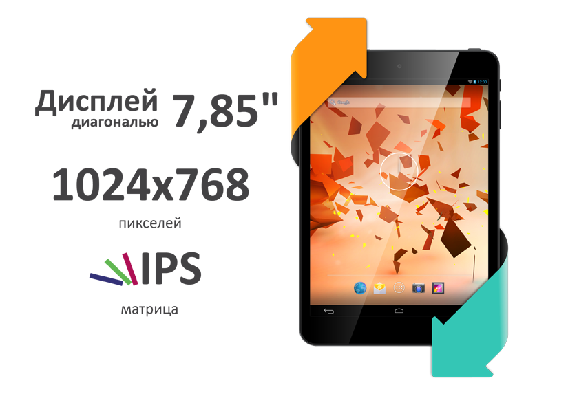 Для чтения, просмотра фильмов, интернет-серфинга и игр был выбран наиболее удобный формат IPS дисплеев – 7,85 дюймов разрешения 1024х768 пикселей и соотношением сторон 4:3. Рабочая область стала значительно больше по сравнению с широкоформатными матрицами, а за счет стильного и компактного корпуса с узкими рамками размеры teXet TM-7853 и TM-7854 практически не отличаются от большинства 7-дюймовых моделей! Мобильные планшеты всегда можно взять с собой и наслаждаться мультимедийным контентом в поездках и Интернет-общением везде, где есть точка доступа WiFi или доступ к сети 3G через смартфон.