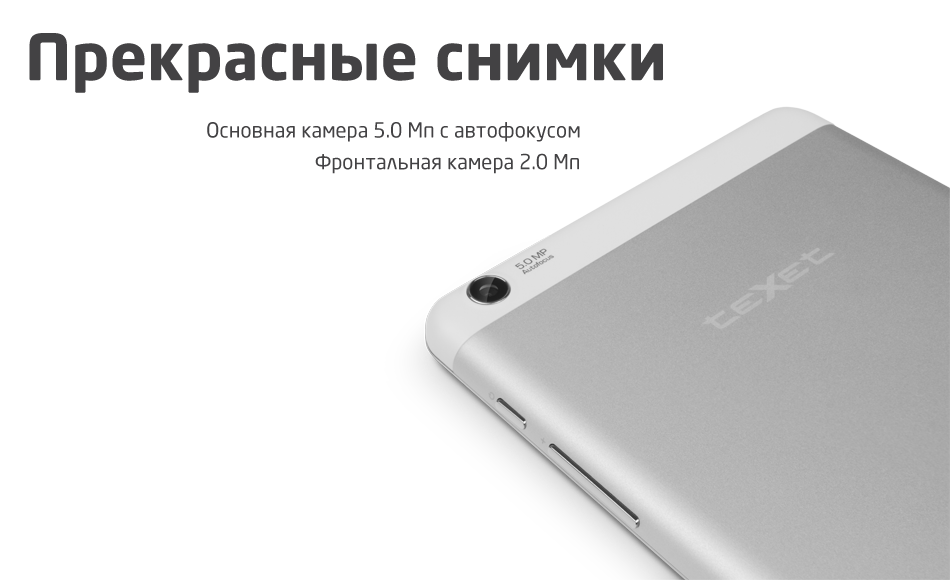 teXet X-force 7 3G сосредоточил в себе множество мультимедийных возможностей, планшет работает со всеми популярными аудио и видеоформатами, графикой и текстовыми файлами. Кроме того, медиаконтент высокого качества можно создавать самостоятельно при помощи основной камеры с разрешением 5 Мп и автофокусом. Фронтальная камера 2 Мп пригодится для селфи и видеозвонков.