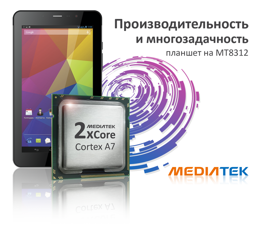 Сердцем планшета является современный двухъядерный процессор от Mediatek MT8312 Cortex A7 с увеличенной до 1.3 ГГц тактовой частой (предыдущие модели имели 1.2 ГГц). Основной чипсет и мощный графический сопроцессор Mali-400MP2 обеспечивают плавную работу с графикой при сниженном расходе энергии – с X-pad вы можете наслаждаться видео до 5 часов без подзарядки.
