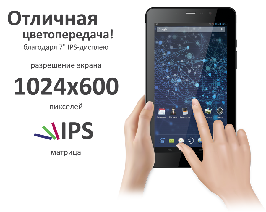 7.0”, IPS, 1024х600 пикселей