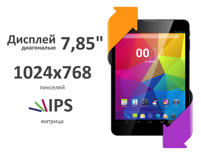 7.85”, IPS, 1024х768 пикселей