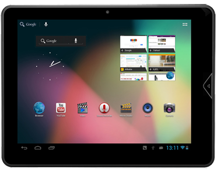 Модель, заключенная в ультратонкий металлический корпус, оснащена отзывчивым сенсорным IPS дисплеем с диагональю 9,7 дюймов и высоким разрешением 1024х768 пикселей. Великолепная цветопередача, яркие, четкие и контрастные изображения, широкий угол обзора позволяют максимально использовать все возможности многочисленных мультимедийных приложений. Стабильную работу обеспечивает мощный графический четырехъядерный процессор Mali-400 MP4.