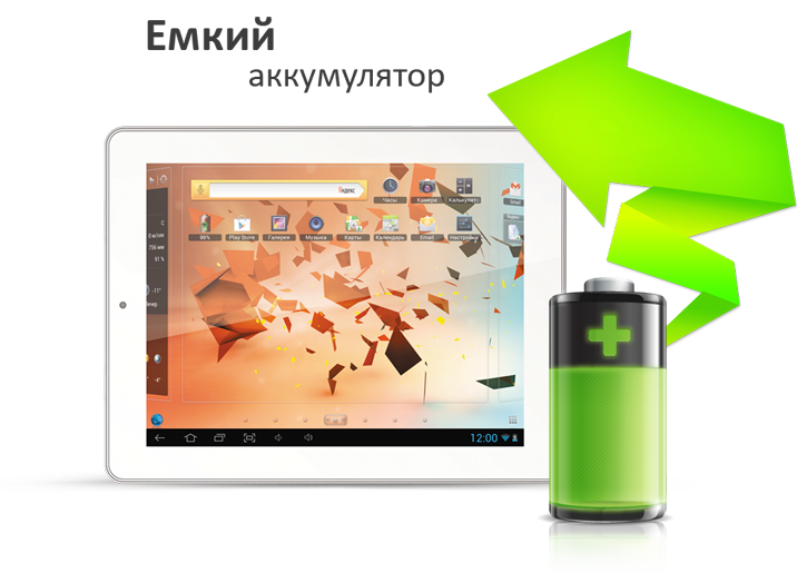 Благодаря современному менее энергозатратному процессору и емкому аккумулятору 8500 мАч пользователи смогут длительное время наслаждаться всеми преимуществами новинки, например, одного заряда хватит для просмотра двух или трех фильмов (до 6-ти часов видео).