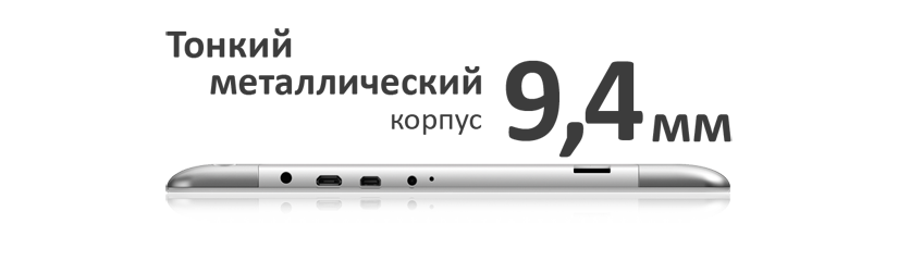 Металлические корпуса teXet и качественная сборка уже давно стали визитной карточкой направления. TM-9750HD также перенял особенности предыдущих моделей, дополнительными достоинствами планшета являются изящный дизайн и компактность (толщина корпуса всего 9,4 мм). Новинка представлена в двух цветах: белый/серебро и черный/титаниум.