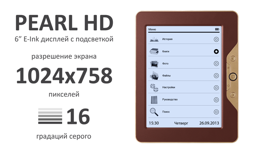 Безусловно, главное достоинство обновленного ридера – это 6-дюймовый дисплей технологии E-Ink PEARL HD, поддерживающий 16 оттенков серого. По сравнению с экранами прошлого поколения PEARL HD имеет бо̀льшее разрешение 1024х758 пикселей и контрастность 12:1. За счет четкой отрисовки текста работать с teXet TB-116FL также комфортно, как и с обычной печатной книгой.