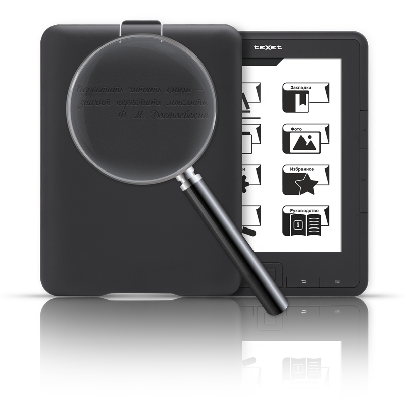 Популярная электронная книга с E-Ink дисплеем TB-137 доступна в обновленном варианте – модели teXet TB-137SE. Сохранив классический дизайн корпуса, эргономичность, простое и понятное управление, ридер получил улучшенную аппаратную базу, модернизированное ПО и удобный чехол-крышку. Дополнительный индекс SE в названии устройства указывает на новый современный процессор, быстродейственный и энергоэффективный, а также поддержку целого спектра текстовых форматов. Книголюбы оценят использование в дизайне цитаты великого русского классика Федора Михайловича Достоевского, которой украшен защитный чехол-крышка.