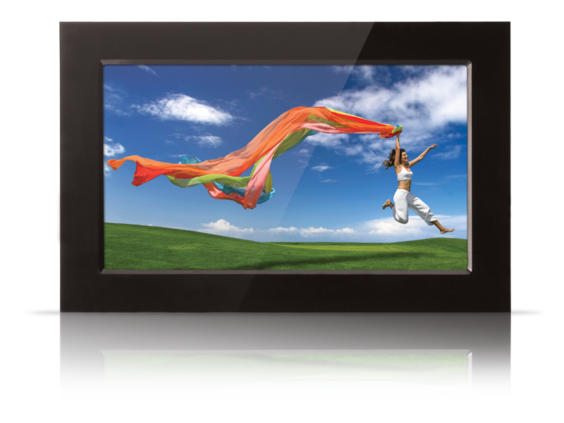Яркий 7-дюймовый цифровой экран с соотношением сторон 16:9 разрешения 800×480 пикселей обладает отличной цветопередачей и воспроизводит фотографии в наиболее распространенном формате JPEG. В новинке реализовано несколько вариантов просмотра слайд-шоу с различными эффектами перехода от одной фотографии к другой. Также пользователю доступны часы и календарь с режимом мини слайд-шоу из изображений галереи.