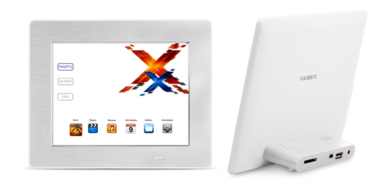 teXet TF-822 соединяет в себе возможности сразу нескольких устройств – фоторамки, универсального проигрывателя и будильника. Качественный дисплей, поддержка широкого спектра форматов, а также компактный дизайн делают новинку самым способным и элегантным устройством среди моделей бюджетного сегмента.
