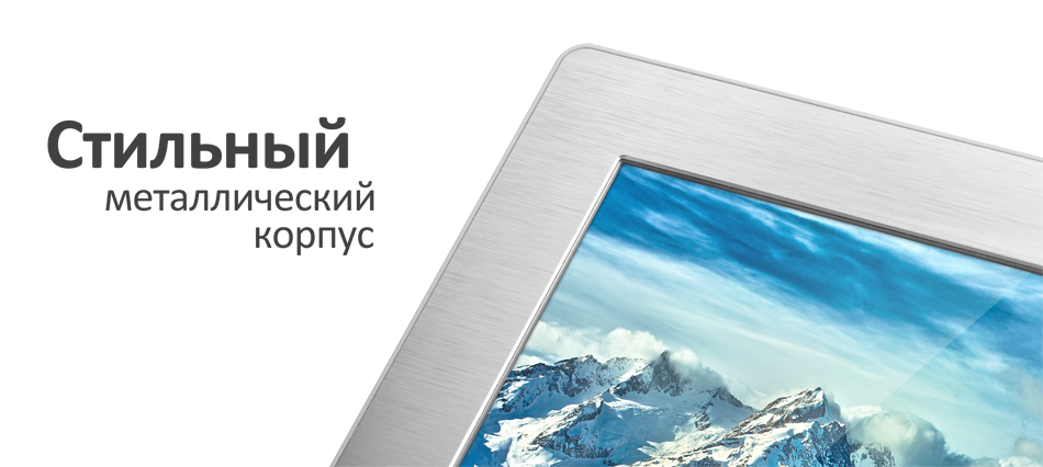 В распоряжении пользователей традиционно богатый набор инструментов для настройки слайд-шоу – подборка эффектов смены изображений, а также возможность отображать на экране один снимок, коллаж из нескольких фото или миниатюры совместно с календарем и часами. Также удобным помощником пользователю станет будильник, который можно настроить под свой ритм жизни.