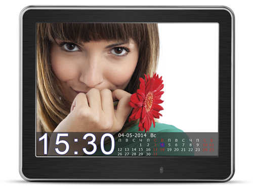 Модель представлена в двух цветовых решениях: черном и белом. Рамка вокруг дисплея исполнена из шлифованного металла, а задняя панель из акрила, что придает устройству элегантность и легкость. Новинка является одной из самых тонких на рынке – толщина корпуса составляет всего 7 мм. Для создания полноценной галереи из любимых фотографий и картинок необходимо воспользоваться картами памяти SD/SDHC/MMC объемом до 32 ГБ.