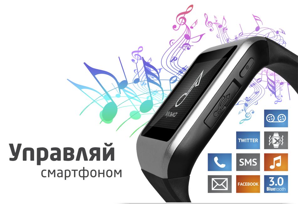 Отвечайте на входящие вызовыв режиме Hands-Free, не прикладывая телефон к уху! Высокочувствительный микрофон обеспечит передачу чистого и четкого голоса. Смарт-часы оборудованы цветным сенсорным дисплеем, на котором очень удобно просматривать SMS и сообщения в социальных сетях, проверять электронную почту и события на календаре. Контакты смартфона и teXet X-Watch автоматически синхронизируются, поэтому вы будете иметь полноценную адресную книгу на часах. С помощью X-Watch можно удаленно управлять аудиоплеером – переключать треки, регулировать громкость, ставить на паузу и возобновлять воспроизведение.